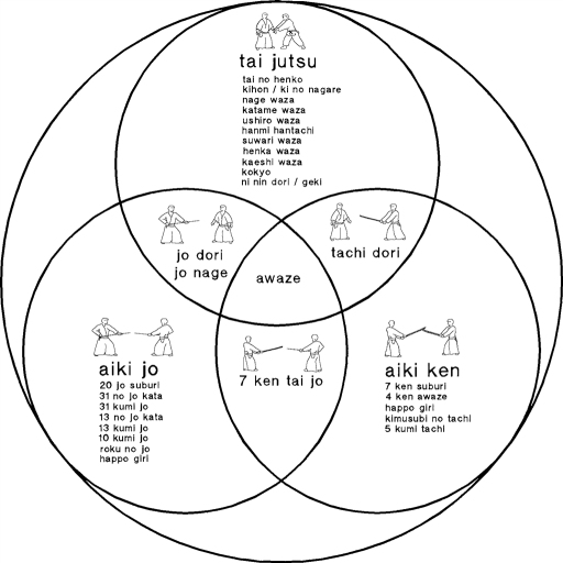 Das Üben von aiki-ken und aiki-jo führt zu einem besseren Verständnis von Distanz, Stellung und Zentrum. Es hilft bei der Entwicklung einer guten Körperhaltung und stärkt Arme und Schultern, was wiederum bei der Ausführung von Körpertechniken hilfreich ist. Das Waffentraining bildet einen wesentlichen und unabdingbaren Teil
